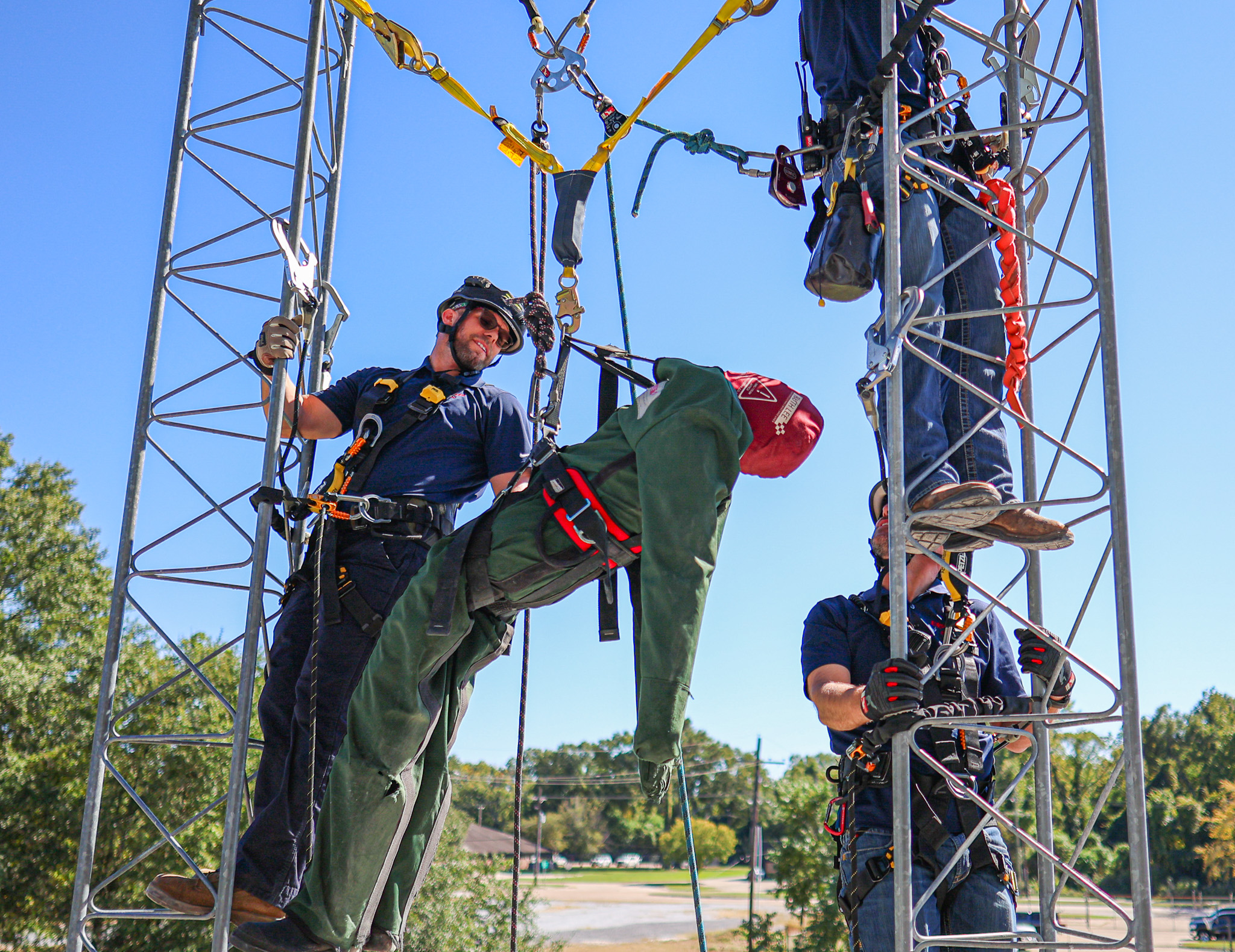 Realistic scenarios are designed with teaching goals that require different rescue and rigging skills. For example, some of the scenarios include simulated IDLH rescue entries with the use of SAR and SCBA equipment. Others include single-person and multi-casualty scenarios with a mix of manikins and live victims/evaluators as patients.